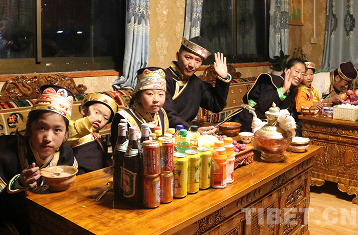 朵當(dāng)村村民益西群培一家互敬美酒。 記者 謝筱純 王珊 張猛 攝
