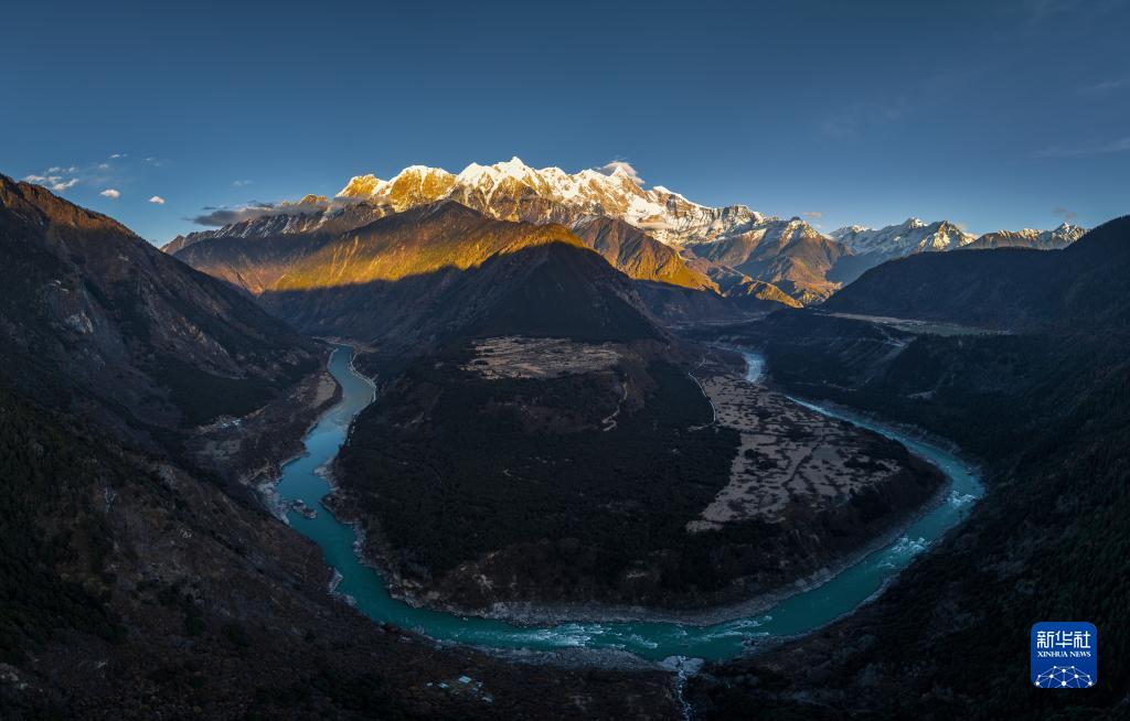 流淌在加拉白壘峰腳下的雅魯藏布江(11月28日攝,無人機照片)。新華社發(fā)(董志雄 攝)
