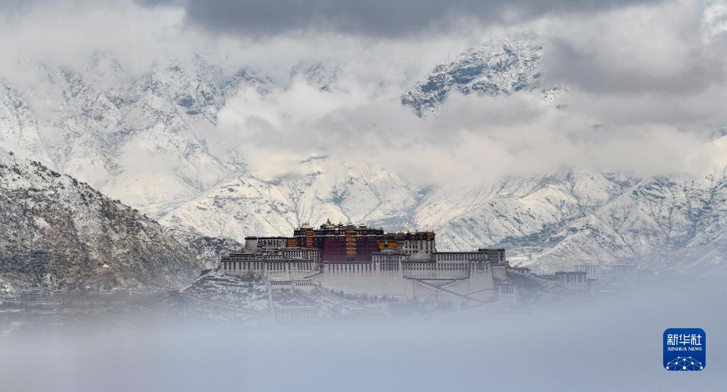 從拉魯濕地拍攝的雪后布達(dá)拉宮(3月30日攝)。新華社記者 晉美多吉 攝