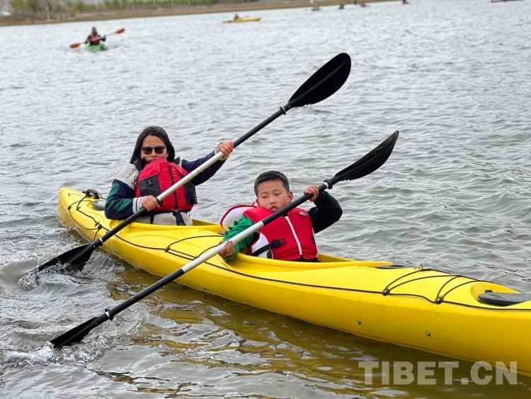 圖為家長帶孩子體驗(yàn)皮劃艇 攝影:德吉卓瑪