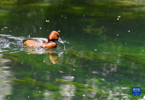 5月6日在拉魯濕地拍攝的白眼潛鴨。新華社記者 張汝鋒 攝