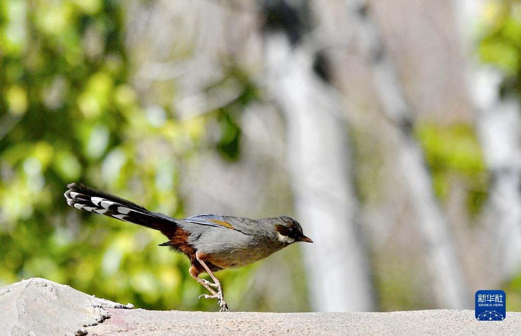 這是在拉薩市城關(guān)區(qū)拍攝的灰腹噪鹛(5月14日攝)。新華社記者 張汝鋒 攝
