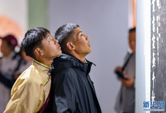 兩名中學生在西藏牦牛博物館參觀《黃庭堅書法文獻展》(5月18日攝)。新華社記者 姜帆 攝