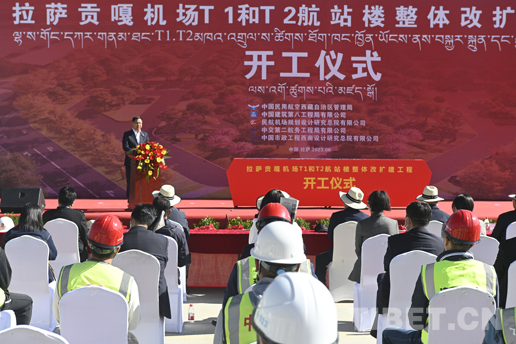 中國西藏網(wǎng)訊 6月2日,民航西藏區(qū)局舉行拉薩貢嘎機(jī)場(chǎng)T1和T2航站樓整體改擴(kuò)建工程開工儀式。