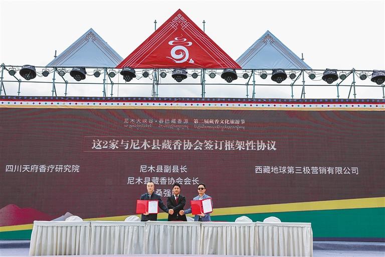 活動(dòng)當(dāng)天,為讓尼木藏香文化得以更好地傳承下去,尼木縣委副書記、縣長(zhǎng)次旺多杰為祖祖輩輩、世世代代用堅(jiān)守傳承文化的10位非遺傳承人授牌“致敬傳統(tǒng)手工藝人”。在集中簽約儀式上,天府香療研究院、西藏地球第三極營(yíng)銷有限公司與尼木縣簽訂戰(zhàn)略框架性協(xié)議,深度開發(fā)藏香產(chǎn)業(yè);中國(guó)能源建設(shè)集團(tuán)西北電力建設(shè)工程有限公司、國(guó)家電投集團(tuán)西藏能源有限公司、北京能源國(guó)際控股有限公司、北京龍藝匯鑫科技有限公司四家企業(yè)與尼木縣人民政府簽訂框架協(xié)議,協(xié)議投資合計(jì)超150億元。