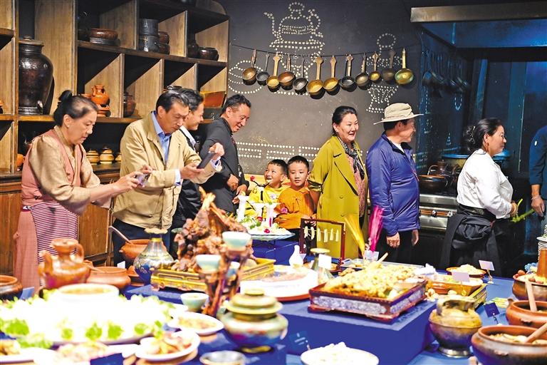 圖為市民和游客在拉薩市文化創(chuàng)意園區(qū)的彭岜熱藏餐廳,參觀傳統(tǒng)藏餐文化展。記者 旦增西旦 攝