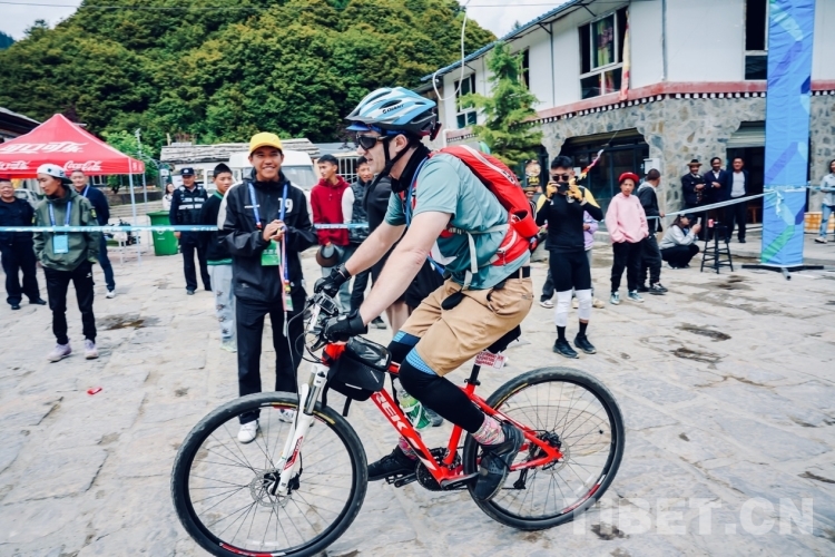 圖為第九屆環(huán)巴松錯國際山地自行車越野競速賽比賽現場 攝影:德吉卓瑪