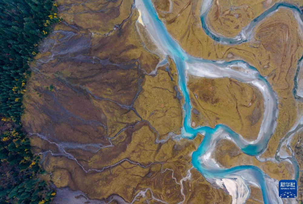 時(shí)值金秋,西藏林芝市秋色已濃,黃葉與初雪交織,流水并雪山輝映,景色如詩(shī)如畫。