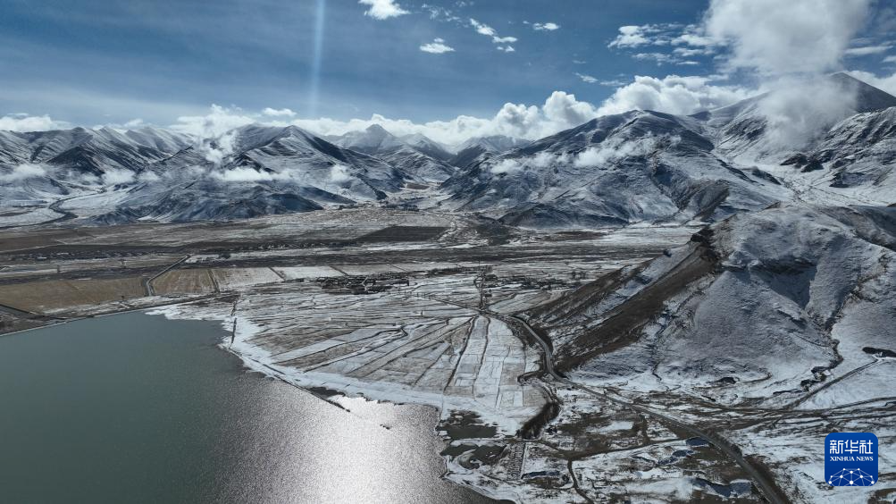 12月8日拍攝的拉薩市林周縣境內(nèi)雪景(無人機(jī)照片)。新華社記者 晉美多吉 攝