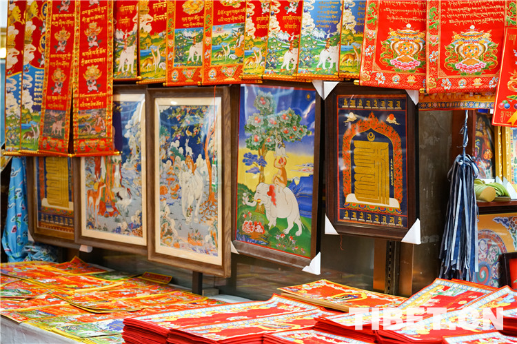 圖為各式各樣的藏式春聯(lián)成為年貨市場(chǎng)的新“寵兒” 攝影:趙振宇