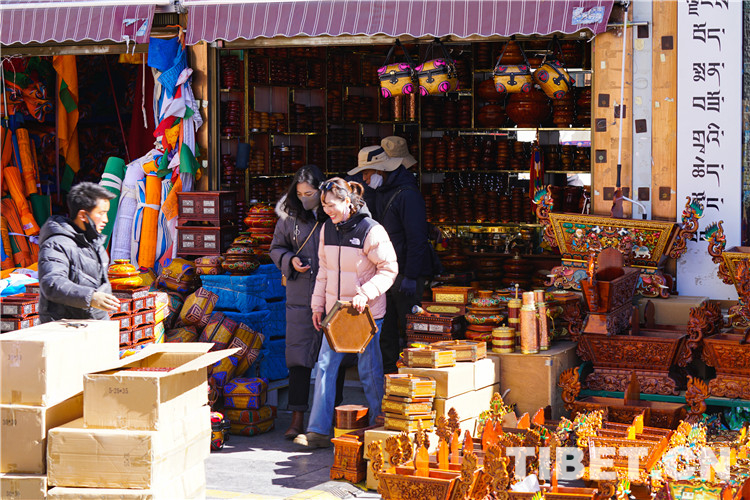 中國(guó)西藏網(wǎng)訊 藏歷新年和新春佳節(jié)即將到來,西藏自治區(qū)拉薩市大街小巷熱鬧非凡。年貨一條街、超市、商店?duì)幭嗤瞥龈魇侥曦?,到處張燈結(jié)彩,處處洋溢著喜慶的氛圍。記者于近日來到八廓商城,通過一組照片帶大家一起感受喜迎藏歷新年的濃濃氛圍。(中國(guó)西藏網(wǎng) 記者/趙振宇 王佳豪)