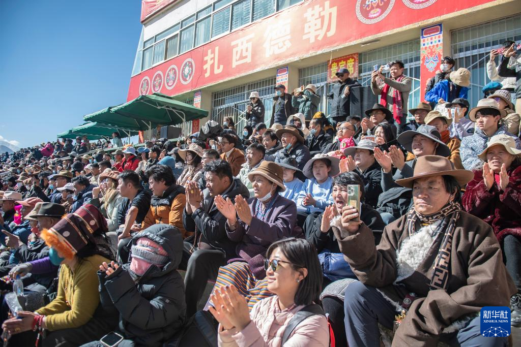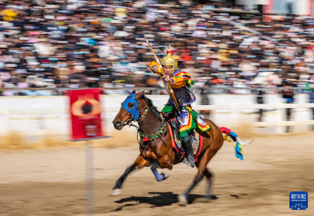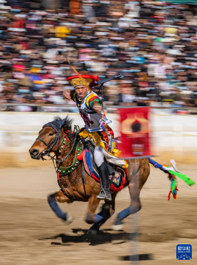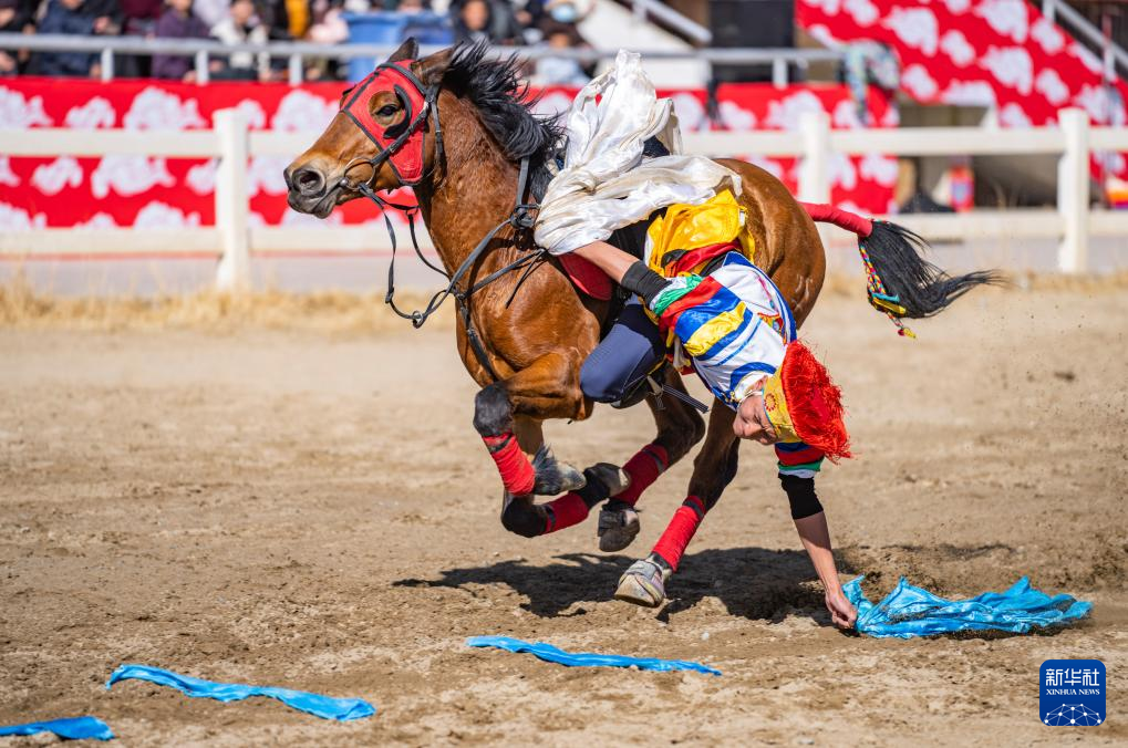 馬術(shù)在西藏是吉祥、勇敢和智慧的象征。騎手們英姿颯爽,用騎馬拾哈達、騎馬射箭等精彩表演為觀眾送上新年的祝福?! ??