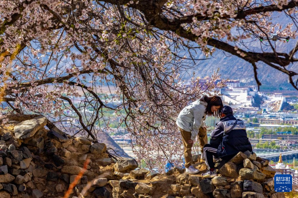 桃花映襯著布達(dá)拉宮(4月17日攝)。新華社記者 姜帆 攝