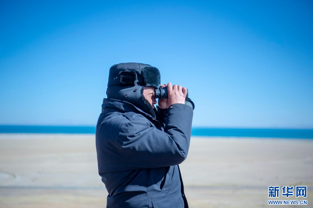 4月14日,野保員次成塔青在色林錯(cuò)國(guó)家級(jí)自然保護(hù)區(qū)巡邏。新華網(wǎng) 旦增努布 攝