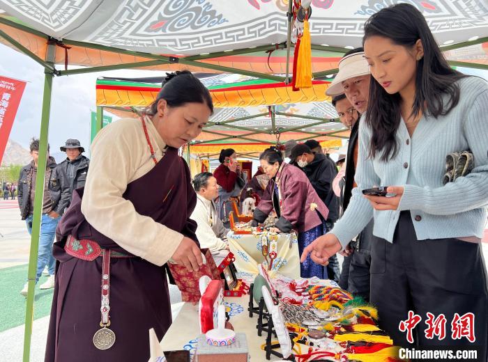 “今年我?guī)е锬厥に嚻啡チ私K、北京推介,今天來(lái)到拉薩進(jìn)行推介我非常高興,今早有不少游客來(lái)購(gòu)買,他們對(duì)我的產(chǎn)品很感興趣,希望通過(guò)推介會(huì),能讓這些精美的手工藝品被更多人了解和喜愛(ài)?!鼻嗪J∮駱?shù)藏族自治州石刻非遺傳承人才仁看卓正忙著向游客介紹產(chǎn)品。