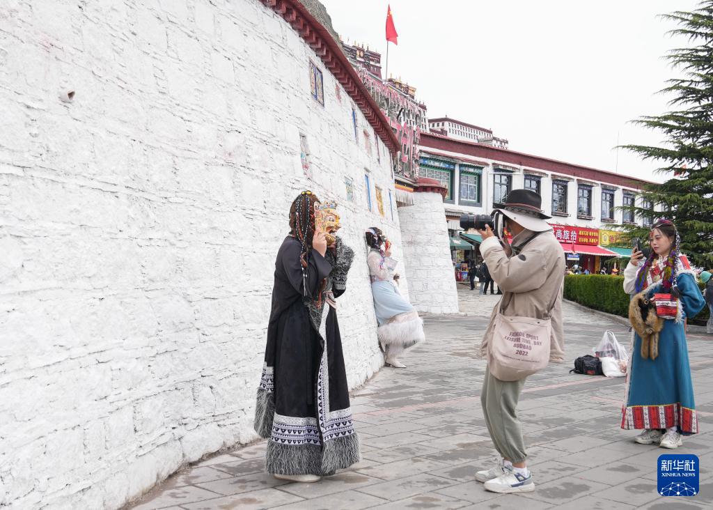 5月5日,游客在布達(dá)拉宮周邊拍照留念。新華社記者 丁汀 攝