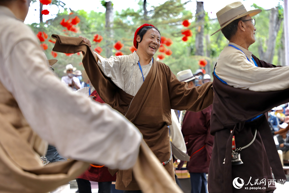 拉薩布達(dá)拉宮腳下的宗角祿康公園民俗活動(dòng)區(qū)里,市民們?cè)谶@里載歌載舞。人民網(wǎng)記者 次仁羅布攝