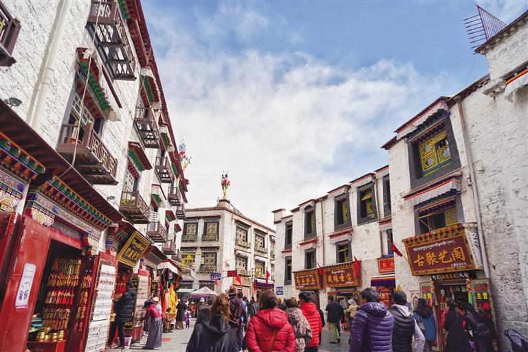 “你喜歡‘特種兵式旅游’還是‘城市漫游’呢?”面對(duì)記者的問題,身著民族服飾正在拍照的伍女士回答:“我本人更喜歡‘城市漫游’,畢竟年紀(jì)大了。‘特種兵式旅游’太累了,可能不適合我。”伍女士來自四川,今年53歲,喜歡旅行的她經(jīng)常約著好朋友四處走走。“這次進(jìn)藏,我們打算就在拉薩待著,逛逛拉薩的大街小巷、博物館、夜市。了解一座城市的文化、歷史,比匆忙的旅行更有趣?!?/p>