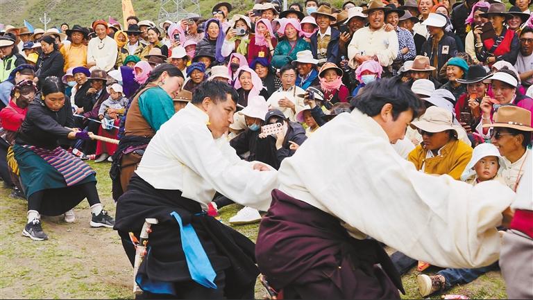 “‘繽紛四季·多彩林周’活動內(nèi)容實在是太豐富了,我們沿途觀賞到了美景,而且還體驗了西藏民俗風情,現(xiàn)場看到村民們擠牦牛奶、手工制作奶制品、指尖技藝制作酥油花等。讓我們感到震驚的是藏族大哥、大姐的力氣真是太大了,能用繩子拉動越野車,扛起百斤重的石頭,給我們帶來了滿滿的視覺盛宴。我是第三次進藏,這次的收獲最多,讓我體驗到了不一樣的西藏。”來自北京的游客張先生興奮地說。
