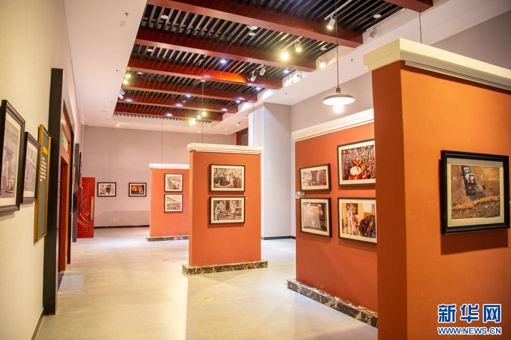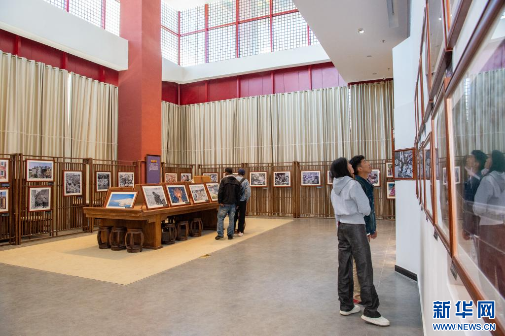 9月30日拍攝林芝美術(shù)館參觀“國(guó)社之鏡·世紀(jì)光影”新華社新聞攝影展林芝分展一角。新華網(wǎng) 旦增努布 攝