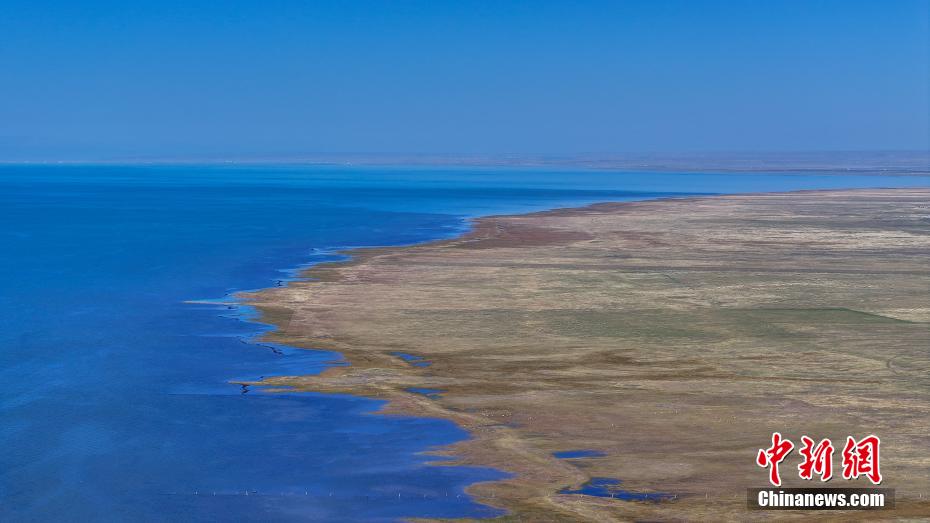9月26日,航拍青海省海北藏族自治州剛察縣仙女灣秋日風光。仙女灣位于青海湖北岸,是青海湖重要高原草甸濕地,生物多樣性豐富。圖為航拍青海省海北藏族自治州剛察縣仙女灣。