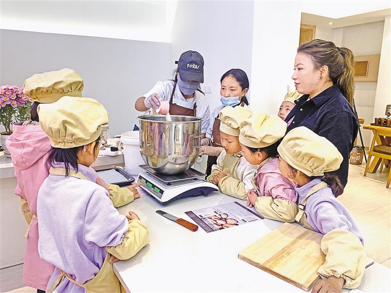 圖為烘培師為小朋友演示糕點(diǎn)制作的方法與步驟。 記者 格桑倫珠 攝