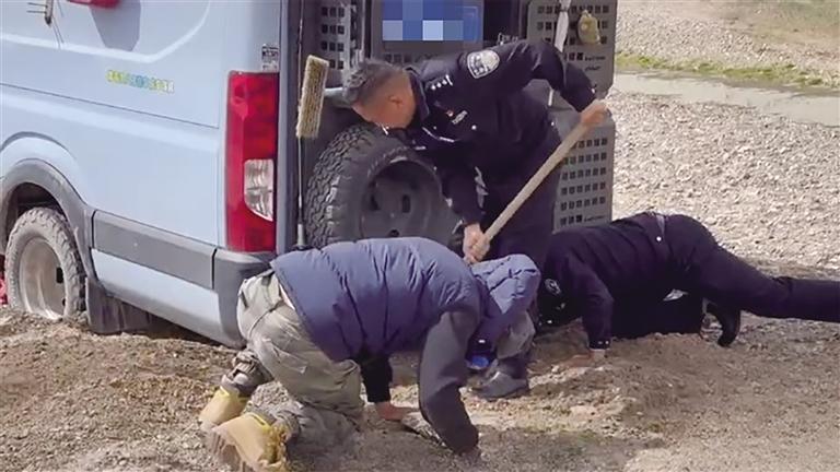 “在最絕望的時(shí)候,我第一時(shí)間想到撥打110。”楊先生撥打報(bào)警電話(huà)沒(méi)一會(huì)兒,一輛警車(chē)趕來(lái),此時(shí)的楊先生,既高興又擔(dān)憂(yōu),高興的是終于看到了希望,擔(dān)憂(yōu)的是害怕受到民警的批評(píng)教育。而令他沒(méi)想到的是,兩名民警下車(chē)的第一件事不是批評(píng)教育他,而是擼起袖子、拿起鐵鍬,努力挖掘汽車(chē)周邊的泥土。