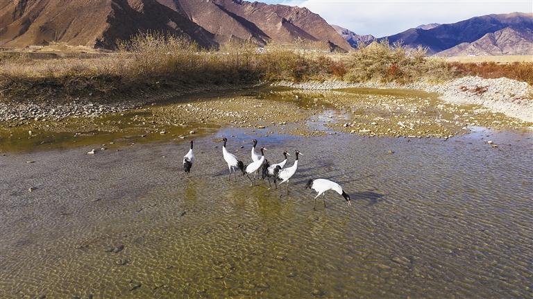 本版圖片均為黑頸鶴在墨竹工卡境內棲息的場景。