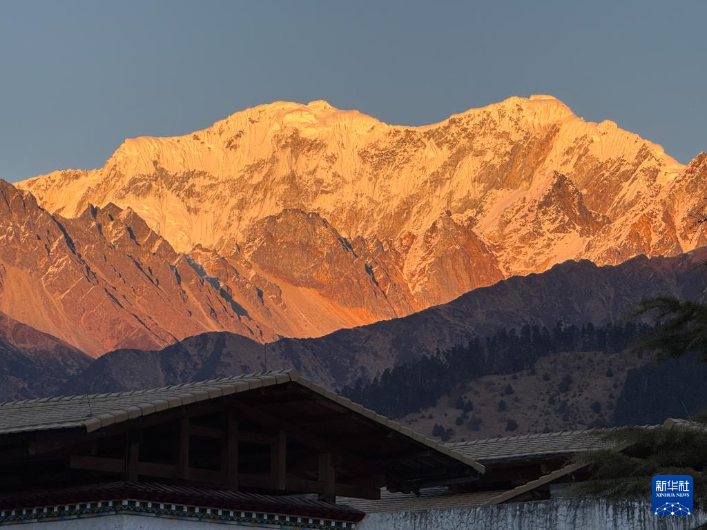 這是12月16日在西藏林芝市魯朗國(guó)際旅游小鎮(zhèn)拍攝的日照金山(手機(jī)照片)。新華社記者 丁汀 攝