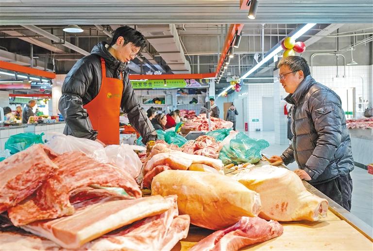 圖為市民在購買肉類產(chǎn)品。記者 丹增群培 巴桑頓珠 攝