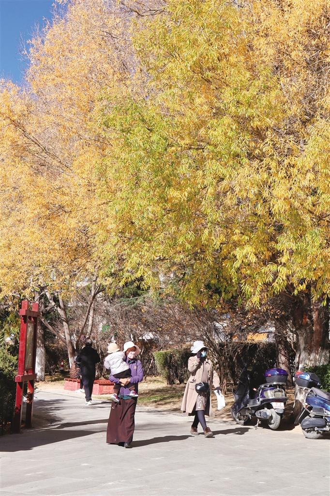 沿著宗角祿康公園湖邊小道悠然前行,湖水波光粼粼,看赤麻鴨與斑頭雁在陽光下自在戲水;忙里偷閑,獨(dú)自一人或約上三五好友來到羅布林卡,享受片刻愜意和閑暇,暫時(shí)屏蔽工作的煩惱和生活的瑣碎,專注感受此刻溜過林間縫隙的陽光。來自成都的張女士說:“在成都,冬天難得見到太陽,一出太陽,公園草坪上就‘長(zhǎng)’滿了人。而來到拉薩后,我最愛下午到公園坐坐,或者去八廓街找家咖啡館,享受曬太陽的美好時(shí)光,漫長(zhǎng)的冬日也覺得日日是好日。”不只是公園,拉薩這座城市的“松弛感”自帶“二十分鐘”效應(yīng),走出家門,無論是在公園的長(zhǎng)椅上小坐,還是漫步在街頭巷尾,或擇一處甜茶館品茶聊天,日光之城總不會(huì)辜負(fù)你這份熱情。