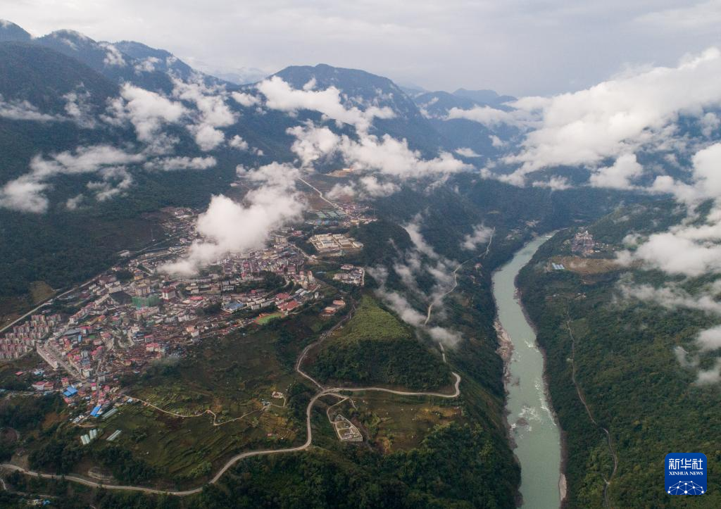 這是12月22日拍攝的墨脫縣風光(無人機照片)。新華社記者 丁汀 攝