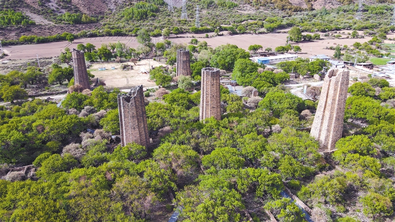 5座堡壘似一個(gè)方陣,相互呼應(yīng)、挺拔向上,彼此的間距在30-50米左右,其中最高的達(dá)到了50多米,雄偉高大、古韻悠長(zhǎng),讓人嘆為觀(guān)止。