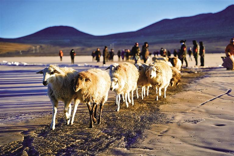 這場(chǎng)趕羊活動(dòng),是一場(chǎng)人與自然的溫柔邂逅。牧羊人與羊群相互陪伴,冰湖與雪山相互映襯,星光與日出交替登場(chǎng),所有元素在這一刻完美交融,共同繪就了推瓦村冬季里最令人難忘的風(fēng)景。冰湖上的每一步,都飽含著對(duì)自然的敬畏與依賴;每一道光,都是對(duì)生命的深情禮贊。 圖/記者 貢曲羅杰 桑旦歐珠 阿旺尼瑪