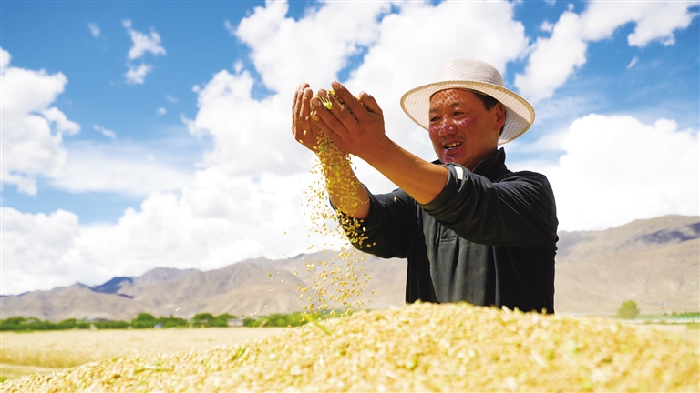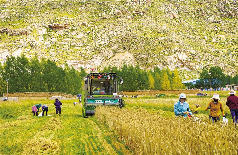 日喀則市白朗縣嘎東鎮(zhèn)馬義村豐收景象(自治區(qū)農(nóng)業(yè)農(nóng)村廳供圖)。