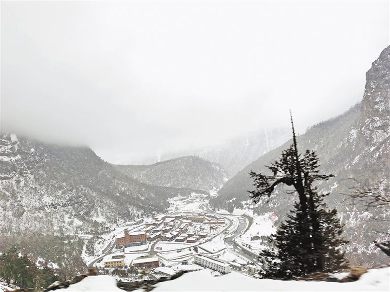 傍晚,翻過海拔5000多米的恰拉山口,經(jīng)過白雪覆蓋的草原,旅游團一頭扎進云霧籠罩著的日拉雪山深處。濃重的霧氣中,雪花飛舞,松林密布,天地之間只剩黑白兩種顏色。