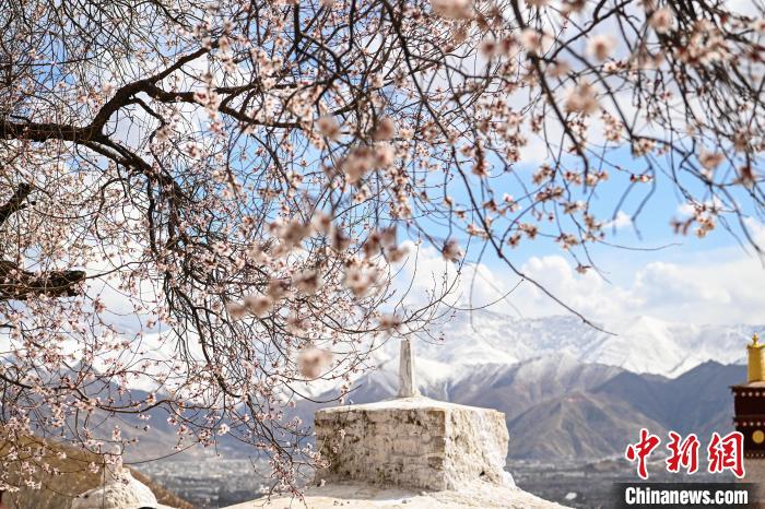 圖為帕邦喀周圍盛開的桃花和遠(yuǎn)處的布達(dá)拉宮。貢嘎來松 攝