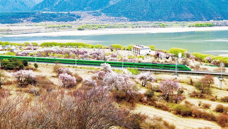 3月下旬至4月,西藏拉薩至林芝鐵路(拉林鐵路)沿線綿延的野生桃花林盛開,高原列車穿行在桃花海間,成為拉林鐵路春天最美的點(diǎn)綴。