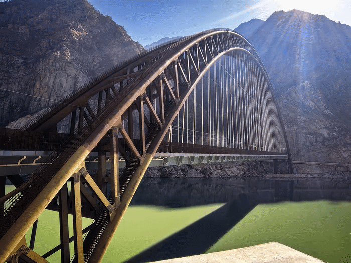 在山南段,列車會穿過藏木特大橋,這是目前世界海拔最高、跨度最大的鐵路鋼管混凝土拱橋,橋下江水如綢緞般在峽谷中流淌,兩岸峭壁巍峨聳立。