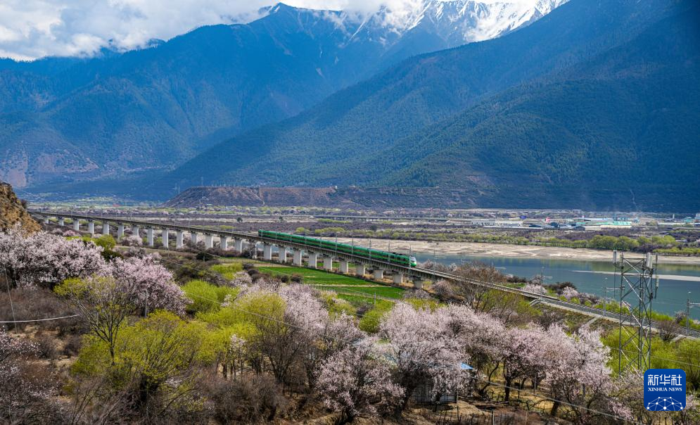 透過車窗,拉林鐵路沿線的風景長卷徐徐展開。列車從拉薩出發(fā),首先映入眼簾的是連綿起伏的雪山,如銀色巨龍蜿蜒而行,與初綻的桃花交相輝映。