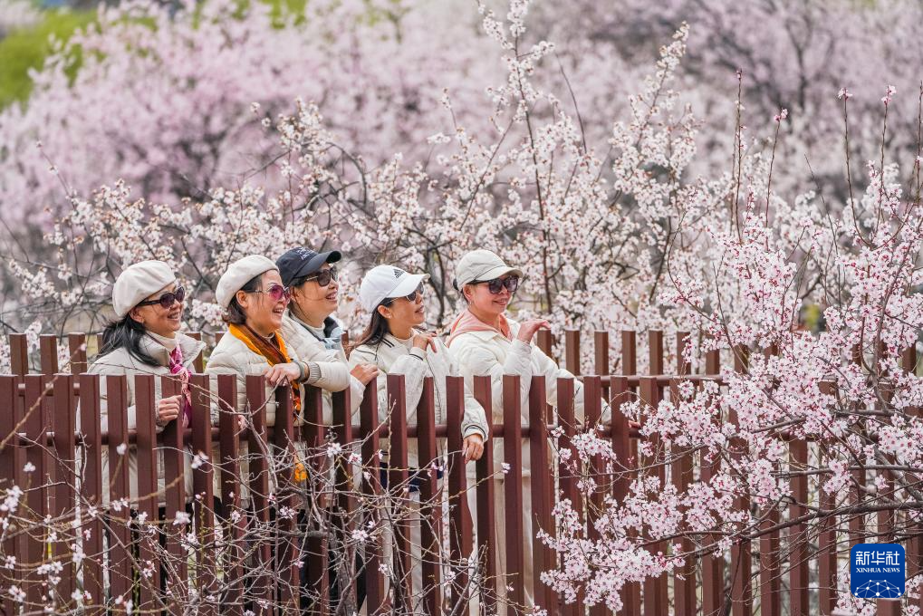 游客在林芝市巴宜區(qū)盛開的桃花中拍照留念。新華社記者 丁增尼達 攝