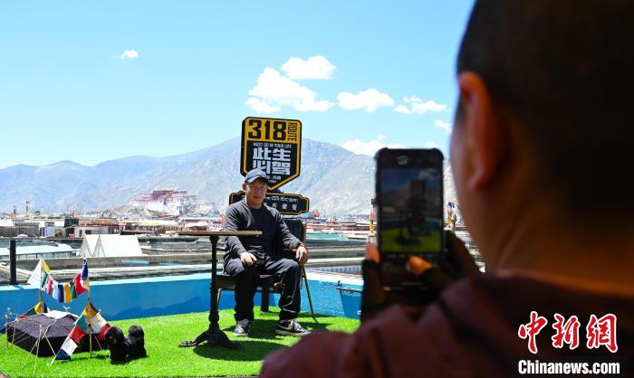 距離布達拉宮1公里外的一處拍攝基地,商家布置了豐富多樣的場景供游客拍攝“旱地拔蔥”。該基地負責人李翔說,“游客可以站在汽車上、騎在摩托車上,或站在‘我愛拉薩’‘318此生必駕’‘鮮花雙喜’等背景造型處進行拍攝。”