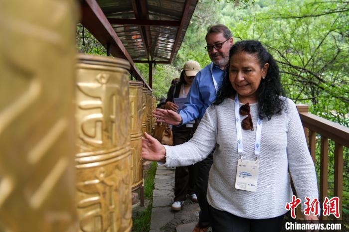 圖為6月28日,智利駐華大使巴勃羅·阿里亞蘭夫婦在西藏巴松措措宗寺參訪。江飛波 攝