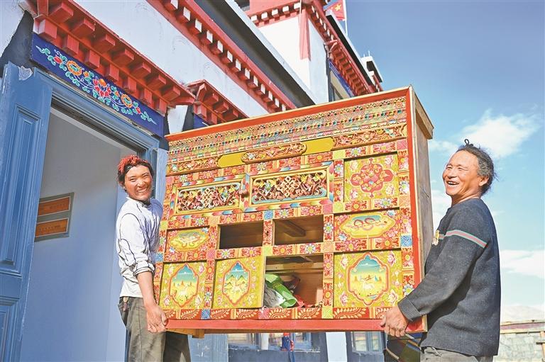 圖為定日縣措果鄉(xiāng)野江村村民往新房里搬家具(資料圖片)。本報記者 平措次仁 攝