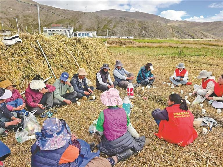 看到這場景,哈西社區(qū)的普布剛組主動喊上鄰居幫老人次仁頓旦收糧:“志愿者幫我們收糧,我們更該互幫互助?!比缃?,浪卡子全鎮(zhèn)已有80余戶自發(fā)加入互助隊伍,“紅色身影”帶動“群眾身影”,田間地頭處處涌動著暖心畫面。