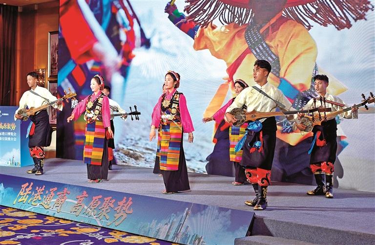 第八屆中國國際進口博覽會西藏自治區(qū)招商引資推介會開幕表演。記者 王敏 索朗瓊珠 嘎松卓瑪 攝