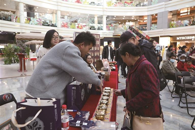 市集體驗(yàn)環(huán)節(jié),工作人員向參會(huì)人員介紹特色產(chǎn)品。