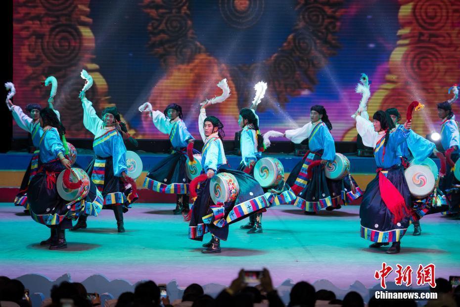 2月10日,隨著2018年春節(jié)和藏歷新年的日益臨近,西藏拉薩的節(jié)日氣氛越來越濃。當晚一場傳統(tǒng)歌舞晚會,提前為拉薩民眾送去新春的祝福。晚會以傳統(tǒng)藏戲、歌舞、小品等表演形式,把藏民族古老的藏戲、卓舞、鍋莊等非物質(zhì)文化遺產(chǎn)搬到了新年舞臺。圖為中國國家級非物質(zhì)文化遺產(chǎn)《卓舞》表演。中新社記者 何蓬磊 攝