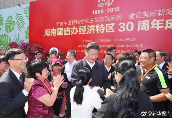 13日上午,習(xí)近平總書記在??谑袇⒂^了海南建省辦經(jīng)濟(jì)特區(qū)30周年成就展,對(duì)30年來(lái)特別是黨的十八大以來(lái)海南經(jīng)濟(jì)社會(huì)發(fā)展成就給予肯定。他指出,貫徹黨中央精神不是喊口號(hào),要結(jié)合當(dāng)?shù)貙?shí)際、經(jīng)過深入調(diào)研形成符合黨中央精神的一系列具體舉措,并在實(shí)施中早見成效、大見成效。