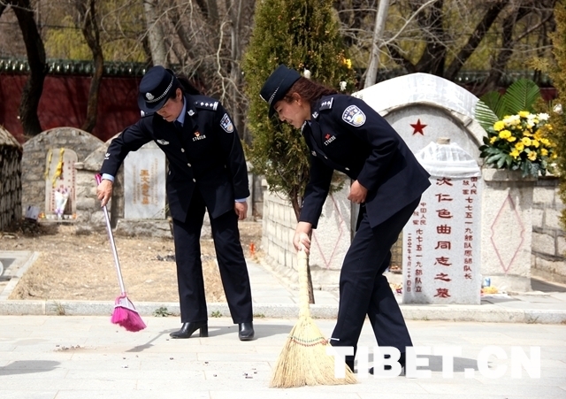圖為曲水縣公安局警員在祭掃。